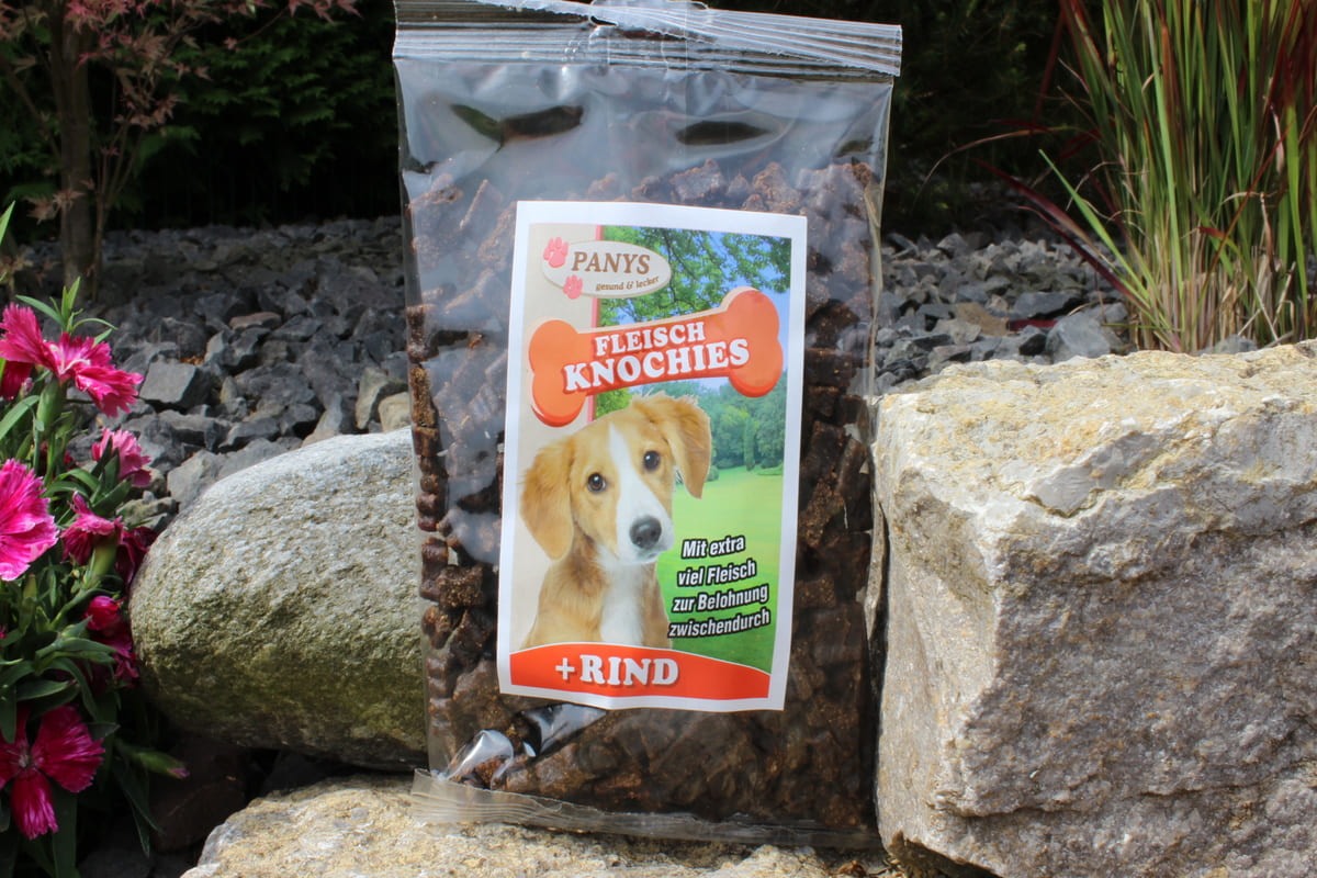 Mit extra viel Fleisch und ohne Gluten sind die PANYS Fleischknochies ein ganz besonderer Leckerbissen. Man könnte auch sagen, ein Highlight unter den Leckerchen und bei allen Hunden beliebt. Die weichen Knöchelchen eignen sich besonders gut zum Trainieren. Weich, damit Ihr Liebling sich nicht beim Training verschlucken kann und Knöchelchenform, damit Sie die Leckerchen leicht nochmal durchteilen können.